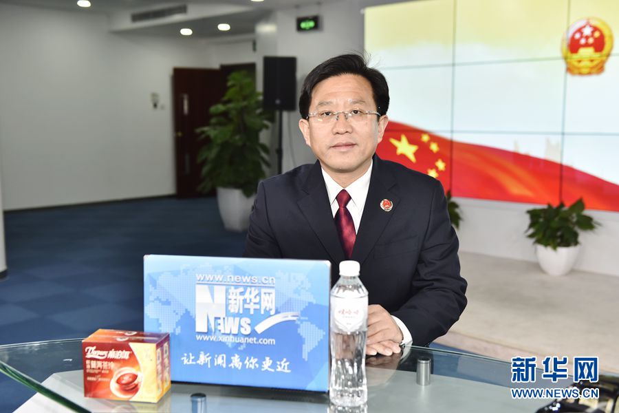 ??? 2016年3月13日,最高人民檢察院辦公廳主任、新聞辦主任王松苗做客新華網兩會訪談直播間。圖為王松苗在訪談現場。新華網 付宇鵬 攝