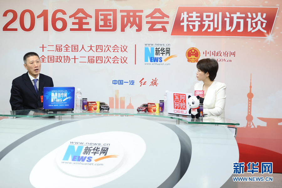 ??? 2016年3月13日,全國人大代表,煙臺張裕葡萄釀酒股份有限公司總經理周洪江做客新華網兩會訪談。圖為周洪江在訪談現場。新華網 盧志佳 攝