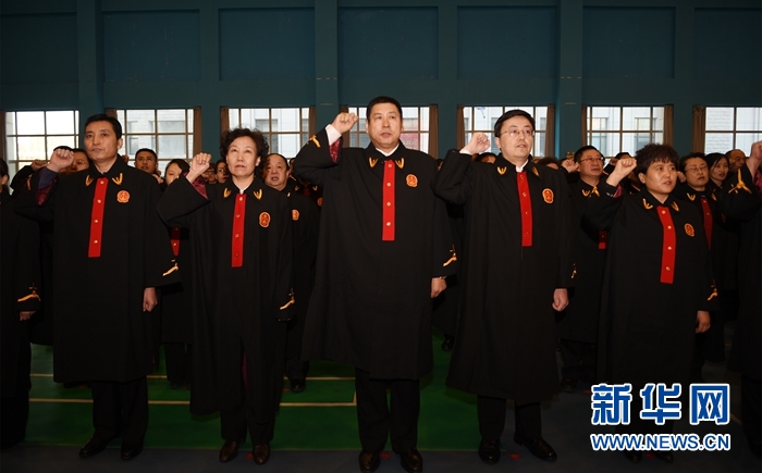 2017年1月10日,內蒙古自治區首批156名入額法官在內蒙古高級人民法院宣誓。司法責任制改革全面推開,12萬多名法官、9萬多名檢察官遴選入額,優質司法資源充實辦案一線。新華社記者 鄧華 攝
