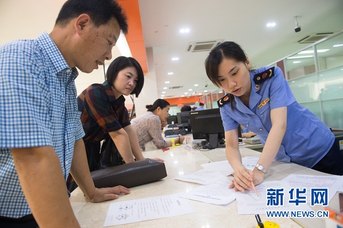 2017年8月17日,在浙江省寧波市奉化區行政服務中心,奉化一家公司在商事登記窗口辦理公司注冊手續。目前全國所有省市縣三級政府部門權責清單均已公布,明確政府機構、職能、權限、程序,厘清權力邊界。新華社記者 翁忻旸 攝