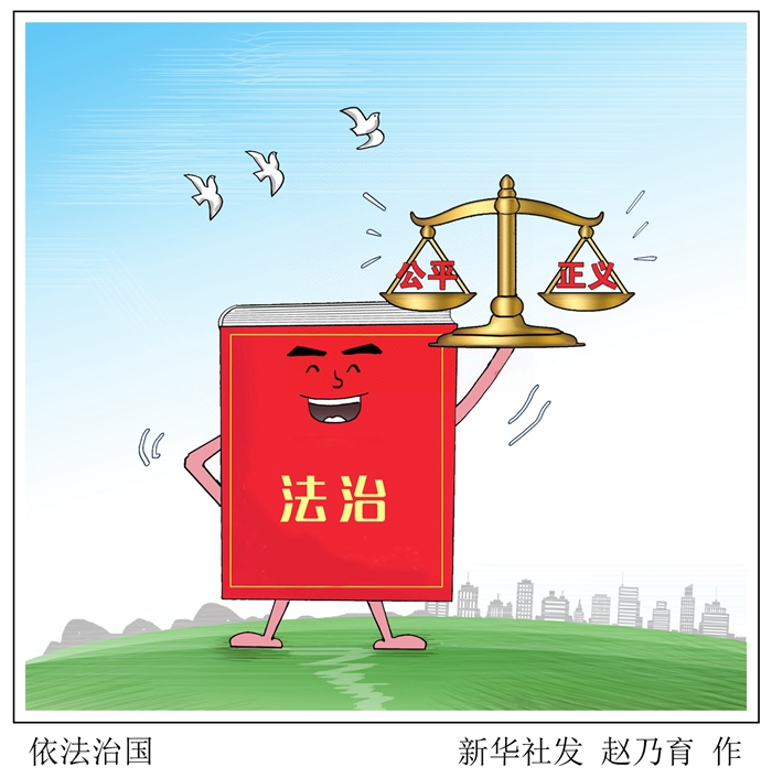 資料漫畫:依法治國 新華社發 趙乃育 作