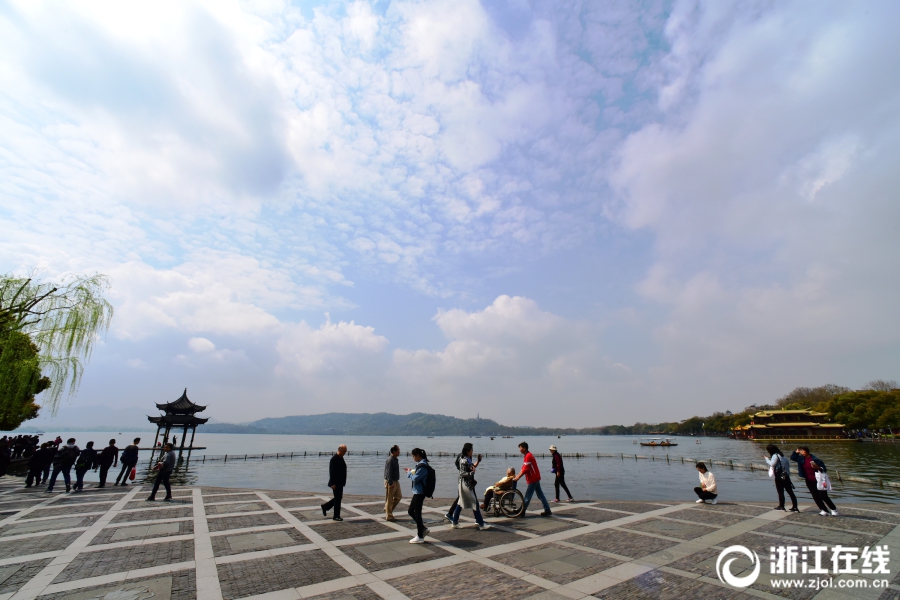 3月26日,雨后西湖再度晴歸。西湖白堤,正是桃紅柳綠時。(浙江在線拍友 里爾 攝)