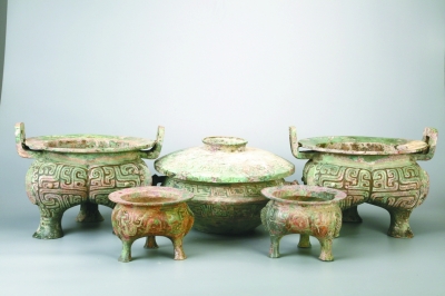 通過對115座墓葬的考古發(fā)掘,發(fā)現(xiàn)大多與兩周時期周系墓葬的特征保持了明顯的一致性。大墓和部分中型墓雖遭嚴(yán)重盜掘,但仍發(fā)掘清理出大量青銅器,以及金器、玉器、鐵器、陶器和漆木器等珍貴文物。最惹眼的是,大中型墓中,多隨葬有精美的漆木器,如鐘磬架子、幾案、豆等。