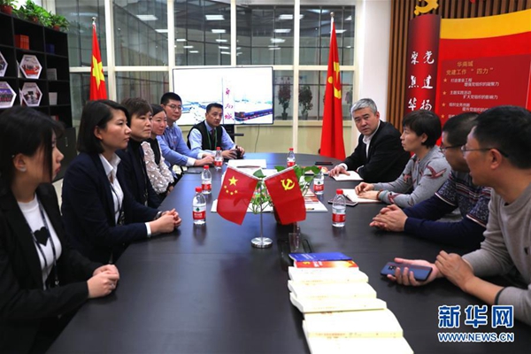 2月15日,在哈爾濱傳化智能公路港物流有限公司,哈爾濱市“首席服務(wù)官”(左一為張智偉、左二為何云霞、右二為姜山)與該公司相關(guān)負(fù)責(zé)人一起探討新一年企業(yè)發(fā)展規(guī)劃。 新華社發(fā)(馬超 攝)