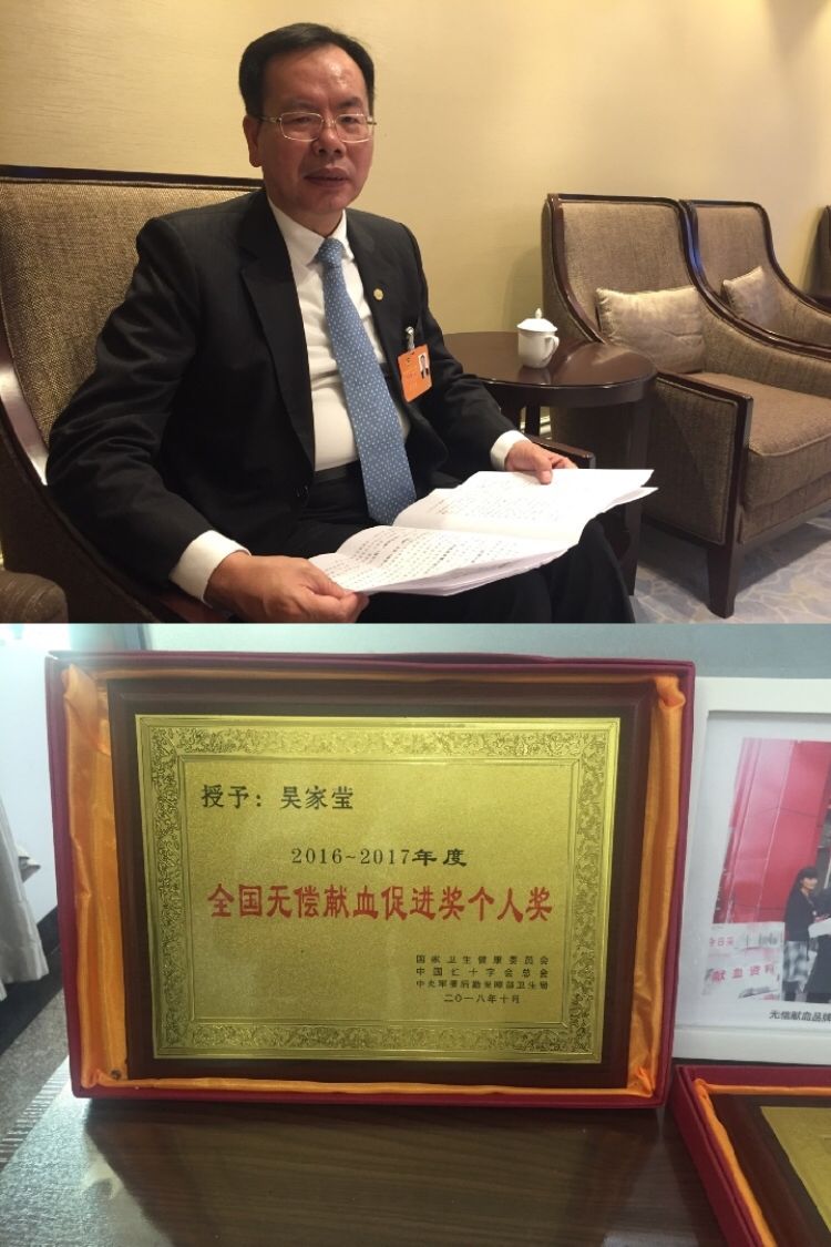 上圖:廈門市臺商投資企業協會會長吳家瑩。下圖:吳家瑩獲得的“全國無償獻血促進獎個人獎”。新華社記者 許雪毅 攝