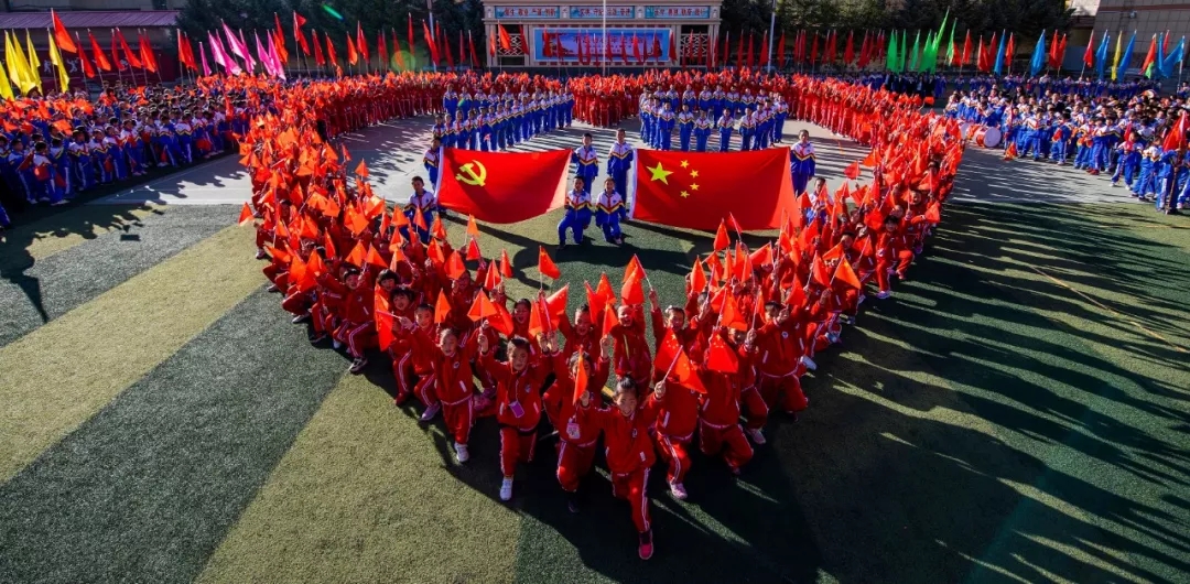 2019年10月1日,甘肅張掖。民樂縣洪水小學全體師生舉行“我和國旗同框 我和國歌同唱”系列活動,祝福偉大祖國繁榮昌盛!作者:祁連子君