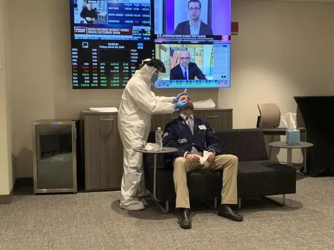 志愿者醫生為疑似新冠感染者作鼻咽喉拭子檢測。(陳揚洺 供圖)