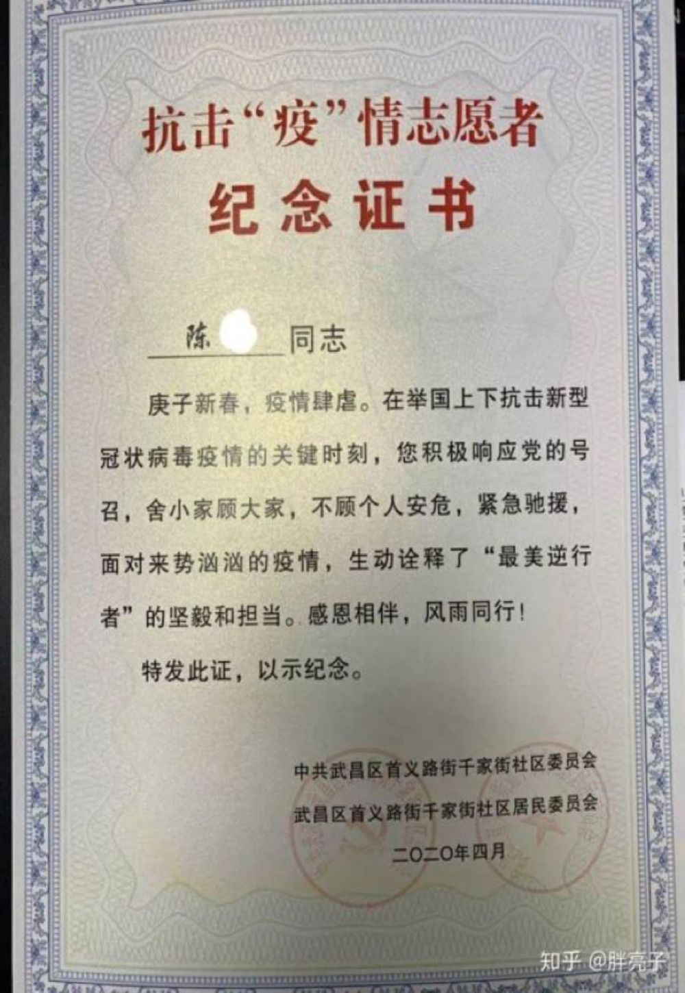 在武漢,網友“胖亮子”說,2月底,他的妻子接到下沉社區做志愿者的通知,可以自愿選擇,但她很快答應了。“平時有點潔癖而且膽小的老婆在這個時候能夠挺身而出,讓我刮目相看?!?