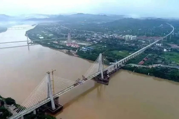 國內首座時速350公里大跨度高速鐵路斜拉橋