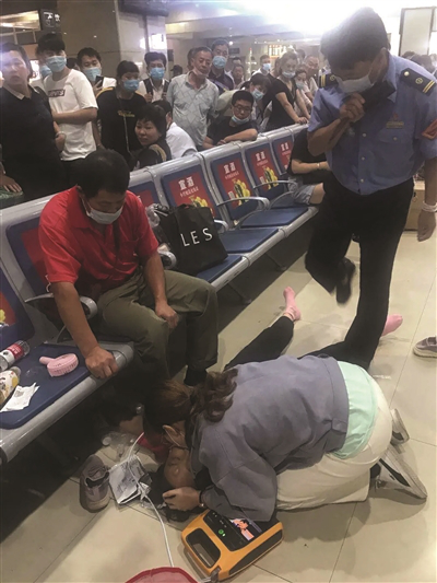 今年4月30日南京苜蓿園地鐵站附近一家健身館內(nèi)一名女子出現(xiàn)心臟驟停,健身館教練、地鐵站值班站長、值班警員等接連對女子進行心肺復(fù)蘇,并使用苜蓿園地鐵站設(shè)置的AED對女子進行電除顫實現(xiàn)成功救人。地鐵工作人員告訴記者,公司組織過相應(yīng)的AED操作,當(dāng)時他通過監(jiān)控看到有人拿AED,就跟了過去,發(fā)現(xiàn)有人疑似心臟驟停,就迅速參與了急救的過程。