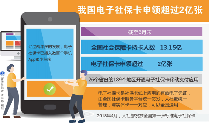 新華社北京10月6日電(記者姜琳)人力資源和社會保障部近日發(fā)布的數(shù)據(jù)顯示,截至6月末,全國社會保障卡持卡人數(shù)13.15億,電子社保卡申領(lǐng)超過2億張,26個省份的189個地區(qū)開通電子社保卡移動支付應(yīng)用。
