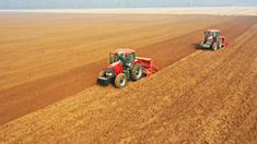 在吉林省鎮賚縣英華村君子蘭繁育基地,農民在管護君子蘭(7月22日攝)。 新華社記者 張楠 攝
