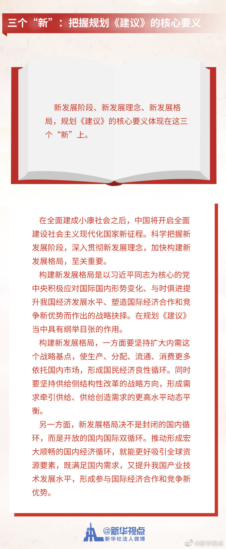 《中共中央關(guān)于制定國民經(jīng)濟和社會發(fā)展第十四個五年規(guī)劃和二〇三五年遠景目標(biāo)的建議》3日公布。這份長約2萬字的文件,為未來5年及15年的中國發(fā)展勾勒藍圖。記者梳理出規(guī)劃《建議》中的“一二三四五”,為觀察中國發(fā)展走向提供一個獨特視角。