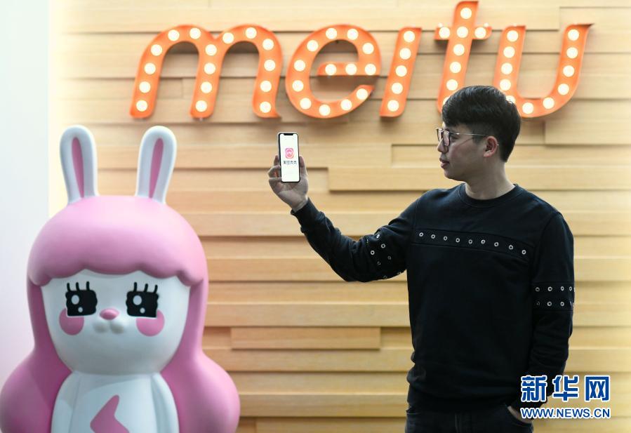 11月10日,美圖公司創始人兼CEO吳欣鴻展示“美圖秀秀”軟件。新華社記者 金良快 攝