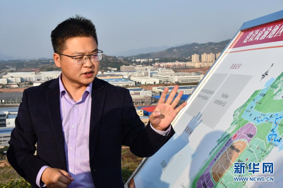 在四川省廣安市鄰水縣川渝合作高灘園區,鄰水縣副縣長趙冬介紹園區遠景目標(11月12日攝)。新華社記者 周相吉 攝