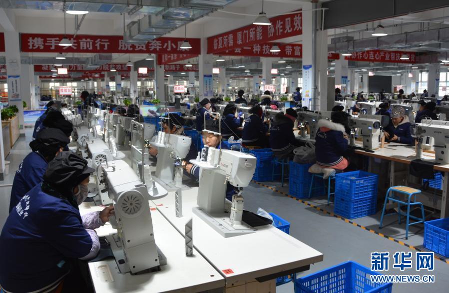 工人在廈琳鞋業產業園扶貧車間制鞋(12月1日攝)。新華社記者 顏之宏 攝