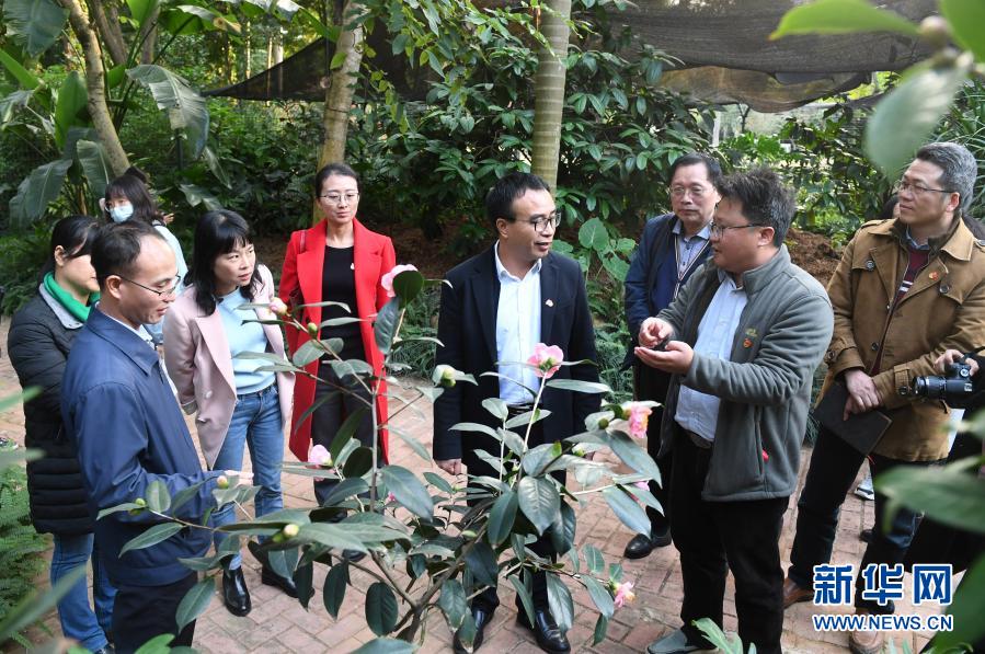 在廣西南寧市金花茶公園,南寧市市政和園林管理系統部分黨員干部聯系實際學習黨的十九屆五中全會精神(12月3日攝)。新華社記者 陸波岸 攝