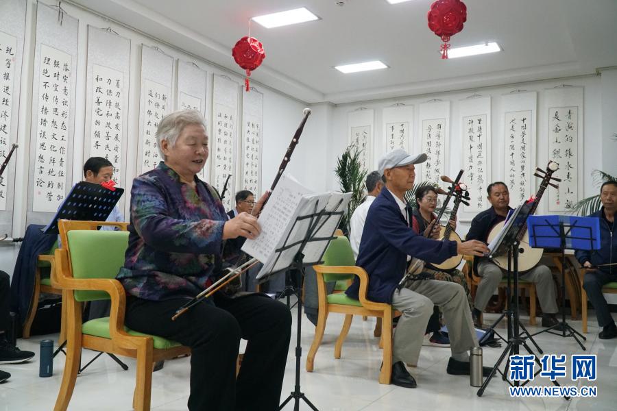 8月21日,在西寧市城西區光華路社區日間照料中心,老人們在活動室排練節目。新華社記者 張子琪 攝
