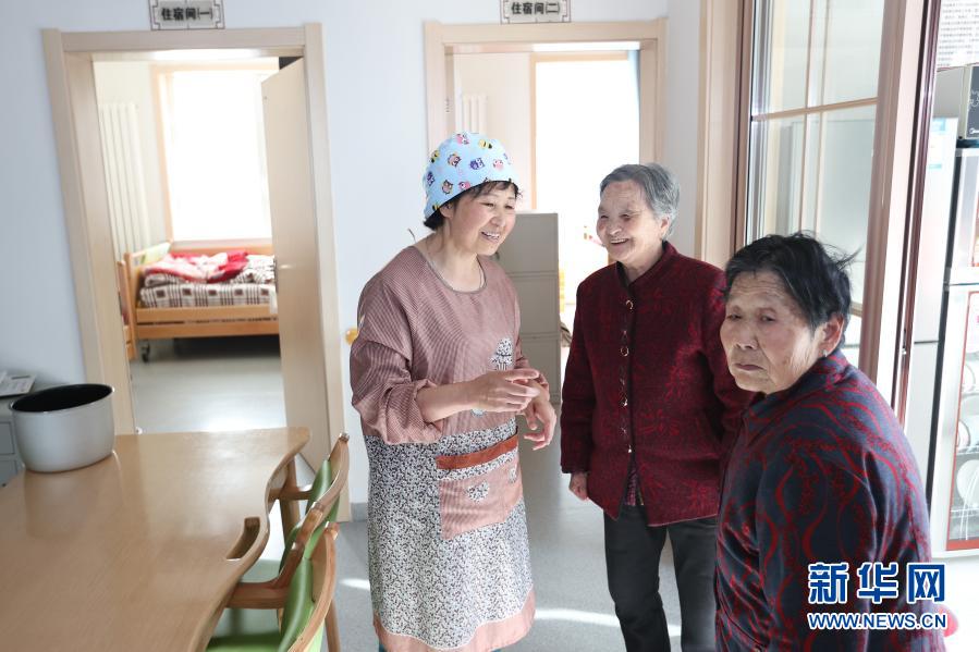 10月22日,西寧市城西區溫馨陽光托老所內,護理員張蓉霞(左)在與老人聊天。新華社記者 吳剛 攝