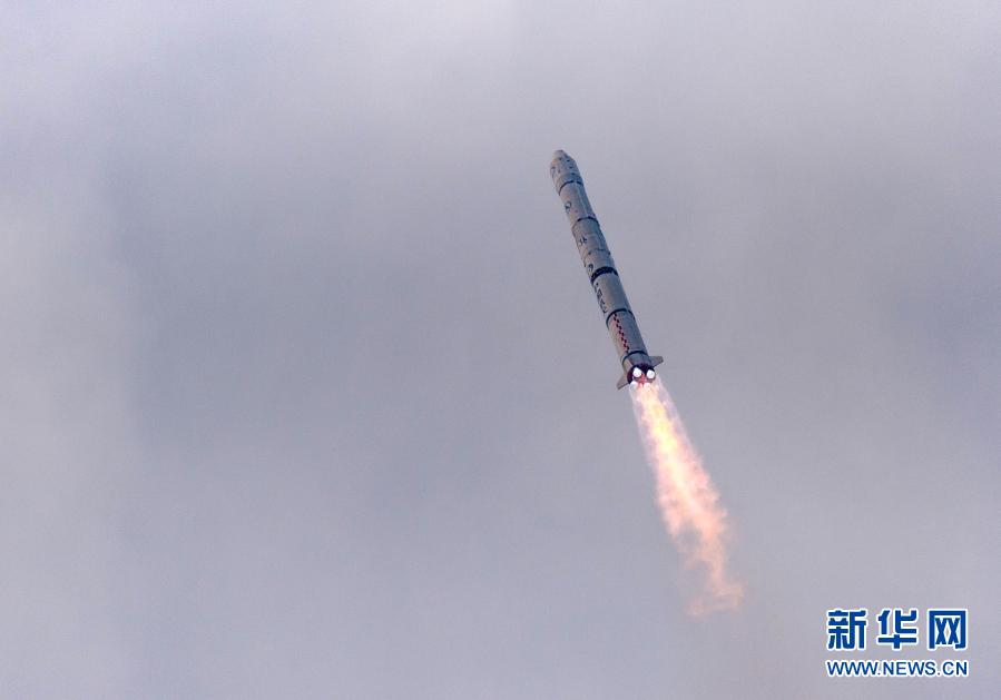 搭載風云二號08星的運載火箭在西昌衛星發射中心點火發射(2014年12月31日攝)。新華社發(郭文彬 攝)