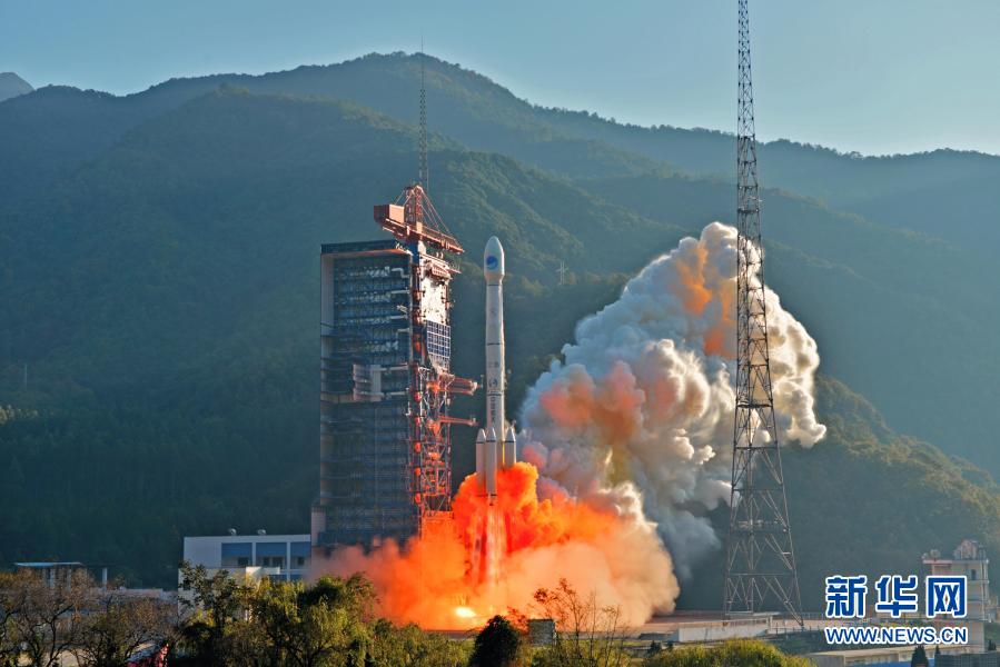 我國在西昌衛星發射中心用長征三號乙運載火箭(及配套遠征一號上面級),以“一箭雙星”方式成功發射第50、51顆北斗導航衛星(2019年11月23日攝)。新華社發(郭文彬 攝)