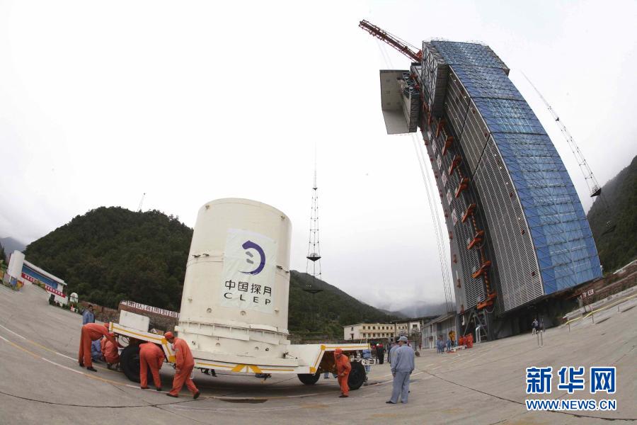 嫦娥一號衛星運抵西昌衛星發射中心西昌發射場(2007年10月11日攝)。新華社發(郭文彬 攝)