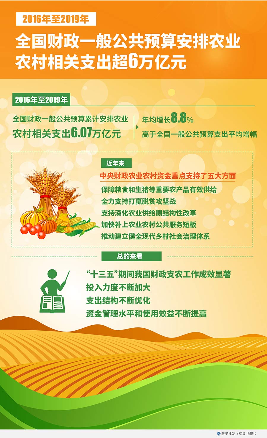 新華社北京12月23日電(記者申鋮)財政部部長劉昆23日表示,2016年至2019年,全國財政一般公共預算累計安排農業農村相關支出6.07萬億元,年均增長8.8%,高于全國一般公共預算支出平均增幅。