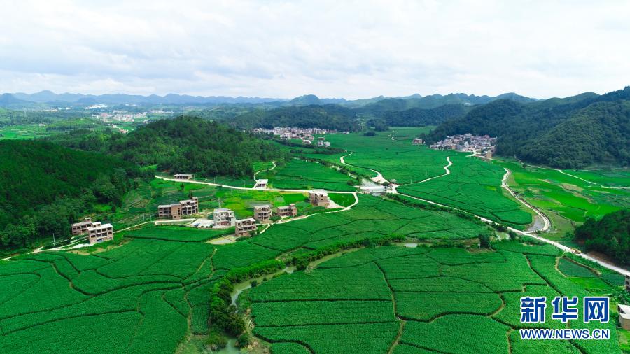 貴州省黔南布依族苗族自治州長順縣核子村,連片的茭白等待收獲(7月6日攝)。新華社發(fā)(朱濤 攝)