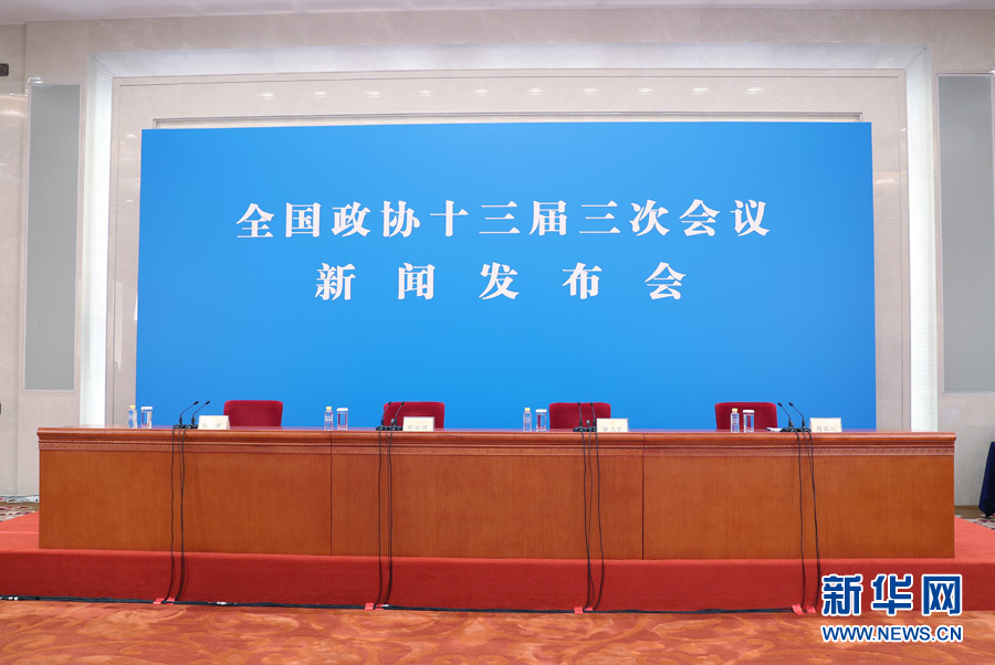 ??? 全國(guó)政協(xié)十三屆三次會(huì)議新聞發(fā)布會(huì)于5月20日15:00召開(kāi)。為有效防控疫情,共同維護(hù)公共衛(wèi)生與健康,發(fā)布會(huì)將采用網(wǎng)絡(luò)視頻形式進(jìn)行。大會(huì)新聞發(fā)言人郭衛(wèi)民向中外媒體介紹本次大會(huì)有關(guān)情況并回答記者提問(wèn)。新華網(wǎng)進(jìn)行現(xiàn)場(chǎng)直播。圖為新聞發(fā)布會(huì)現(xiàn)場(chǎng)。新華網(wǎng)?王翰林 攝