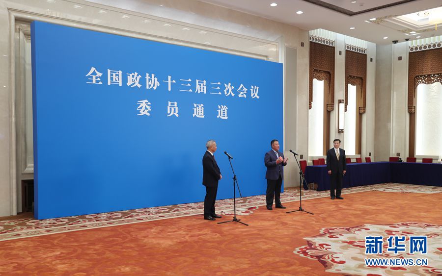 全國政協(xié)十三屆三次會議首場“委員通道”采訪活動于5月21日在人民大會堂新聞發(fā)布廳舉行,邀請部分全國政協(xié)委員通過網(wǎng)絡(luò)視頻方式接受媒體采訪。圖為“委員通道”現(xiàn)場。新華網(wǎng) 王翰林 攝