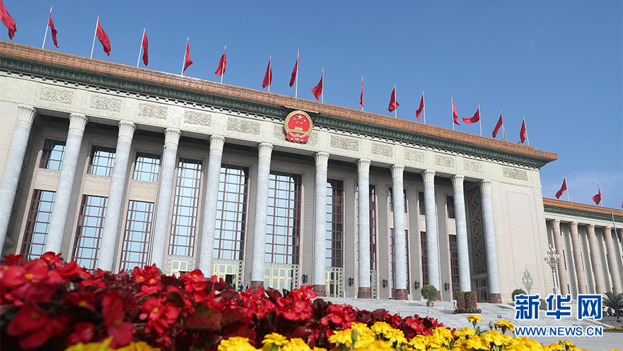 十三屆全國人大三次會議22日上午9時在人民大會堂開幕,新華網進行現場直播。圖為人民大會堂外景。新華網 翟子赫 攝