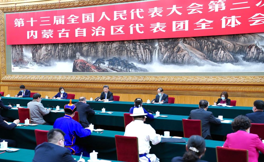 2020年5月22日,習近平參加十三屆全國人大三次會議內蒙古代表團的審議。新華社記者 謝環馳 攝