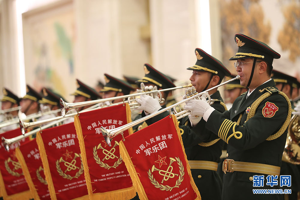 ??? 9月29日上午10時,中華人民共和國國家勛章和國家榮譽稱號頒授儀式在人民大會堂隆重舉行。圖為頒授儀式現場的中國人民解放軍軍樂團。新華網 陳杰 攝