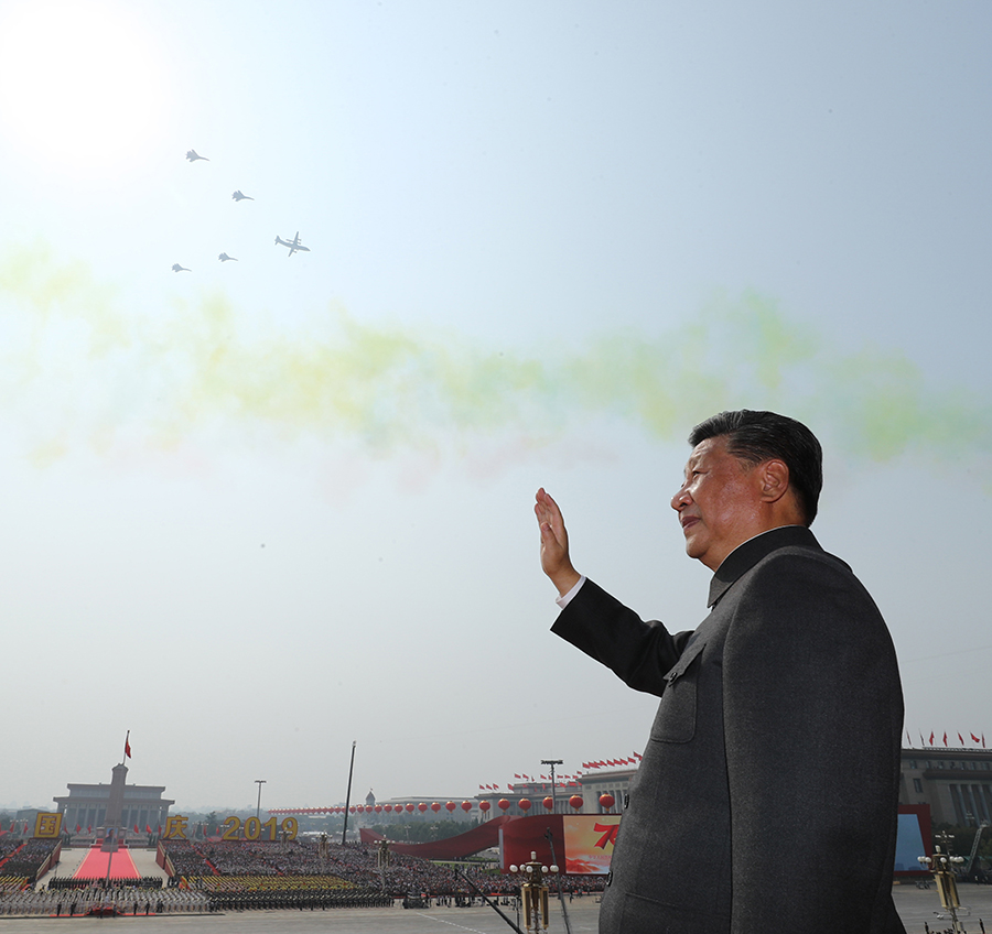 10月1日,慶祝中華人民共和國成立70周年大會在北京天安門廣場隆重舉行。這是中共中央總書記、國家主席、中央軍委主席習(xí)近平檢閱受閱部隊。 新華社記者 劉衛(wèi)兵 攝