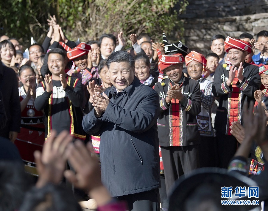 2020年1月19日,習(xí)近平在云南省騰沖市清水鄉(xiāng)三家村中寨司莫拉佤族村看望鄉(xiāng)親們,并向大家送上新春祝福。新華社記者 燕雁 攝