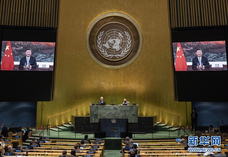 2020年9月22日,習(xí)近平在第七十五屆聯(lián)合國大會(huì)一般性辯論上發(fā)表重要講話,提出我們有信心如期實(shí)現(xiàn)現(xiàn)行標(biāo)準(zhǔn)下農(nóng)村貧困人口全部脫貧,提前10年實(shí)現(xiàn)《聯(lián)合國2030年可持續(xù)發(fā)展議程》減貧目標(biāo)。新華社發(fā)(聯(lián)合國供圖/埃瑟金德爾·德貝貝 攝)