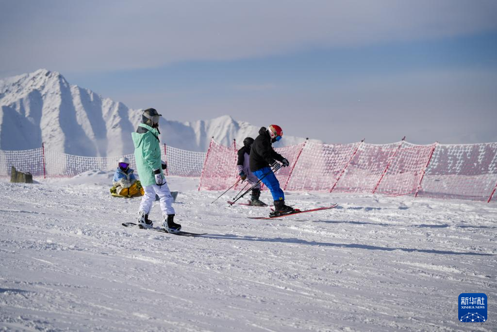 2月4日,滑雪爱好者在新疆阿勒泰地区禾木吉克普林国际滑雪度假区滑雪。