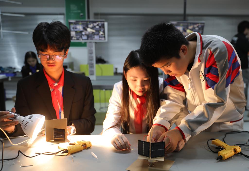 在该校的航天少年科学院,中越少先队员同上一堂科学课,完成“太阳能对日定向装置”模型组装,在协作中增进理解与友谊。越南少先队辅导员还参观了校史馆,了解学校红色历史,并在生态教室、种植园地与八一学校教师就少先队工作等进行交流。