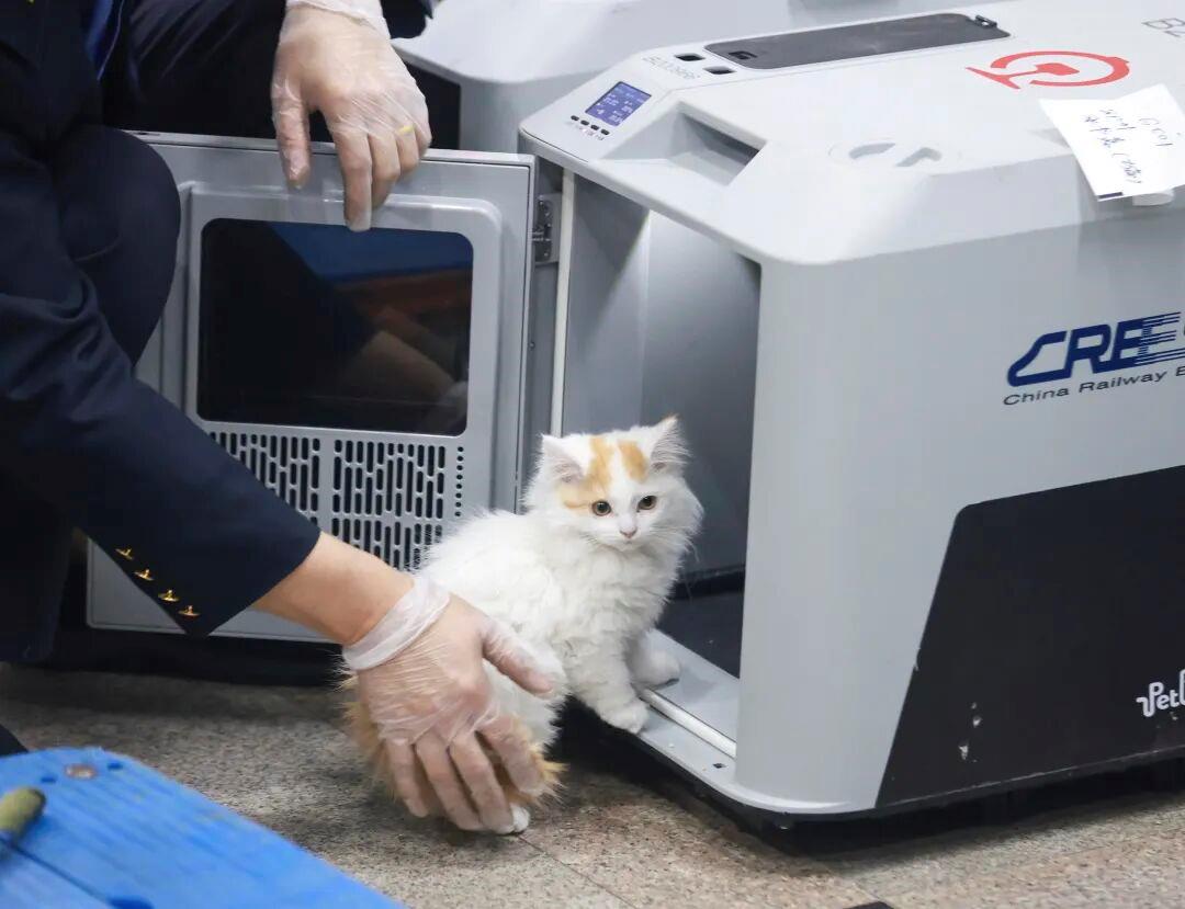 运输全程采用专业宠物快运箱,配备恒温、供氧、通风等设施,工作人员每2小时定时巡视,可按需为宠物补充水分。值得一提的是,宠物专属放置区域与旅客车厢完全隔离。