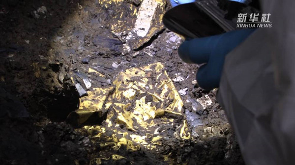 此次新發(fā)現(xiàn)的6個(gè)坑狀祭祀遺跡在第1、2號(hào)祭祀坑旁。面積僅3.5平方米的5號(hào)祭祀坑內(nèi)一片金光閃閃,已清理出多件金器、玉質(zhì)管珠和象牙飾品等。正在發(fā)掘的3號(hào)祭祀坑每天都有新發(fā)現(xiàn),6號(hào)祭祀坑確認(rèn)一具“木匣”,長(zhǎng)約1.5米、寬約0.4米,木匣內(nèi)外均涂抹朱砂,目前尚不能確認(rèn)其用途。