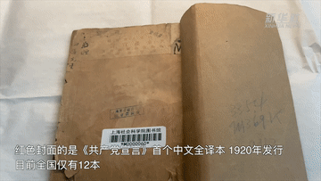 紅色封面的是《共產(chǎn)黨宣言》首個(gè)中文全譯本,由陳望道翻譯,于1920年發(fā)行,目前全國僅有12本。