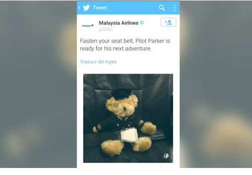 據(jù)阿根廷Infobae網(wǎng)站7月17日報道,馬來西亞航空公司的MH17航班在烏克蘭東部墜毀后,該航空公司刪除了MH17航班出事前的最后一條官方推特。這條英文推特的內(nèi)容是:系上安全帶,飛行員“派克”已經(jīng)準(zhǔn)備好了下一次旅程。推特還配了一張玩具熊假扮成飛行員準(zhǔn)備起飛的照片。