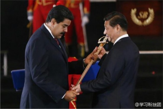 ????2014年7月20日,馬杜羅向習近平授予象征自由、主權、獨立的玻利瓦爾劍