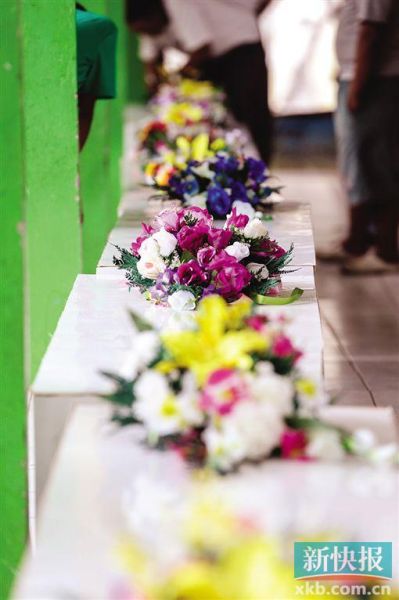 當(dāng)電視播放當(dāng)天軍人抬著2具遺體棺材的畫面時,餐廳里瞬間安靜下來,沒有了刀叉的碰撞聲,人們齊齊把眼光聚集在電視上,那令人心痛悲傷的畫面:蓋著鮮花的棺材,被早在泗水守候的兩隊軍人莊嚴而沉重地慢慢抬下飛機,然后輕輕地放在軍車上,在警車的開路下,徐徐地向泗水醫(yī)院駛?cè)ァ?/p>