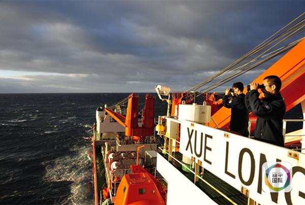 3月28日,“雪龍”號科考船的工作人員手持望遠鏡觀察海上情況。(新華社記者張建松攝)