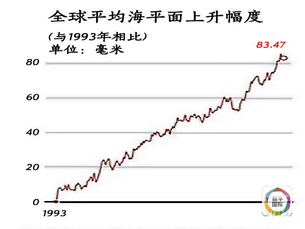 美國國家航空航天局戈達德航天中心利用激光技術監(jiān)測海平面上升狀況,發(fā)現(xiàn)全球海平面比1993年平均升高超過83毫米。一些科學家預計,到本世紀末,海平面還將上升2至4英尺(約0.6至1.2米)。