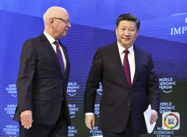 1月17日,國家主席習近平在瑞士達沃斯國際會議中心出席世界經濟論壇2017年年會開幕式,并發表題為《共擔時代責任 共促全球發展》的主旨演講。這是習近平同世界經濟論壇創始人兼執行主席施瓦布在一起。(新華社記者 蘭紅光 攝)