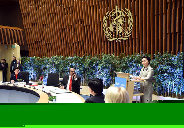 1月18日,國家主席習(xí)近平夫人、世界衛(wèi)生組織結(jié)核病和艾滋病防治親善大使彭麗媛應(yīng)世界衛(wèi)生組織總干事陳馮富珍和聯(lián)合國艾滋病規(guī)劃署執(zhí)行主任西迪貝邀請,在瑞士日內(nèi)瓦出席為她舉行的親善大使任期續(xù)延暨頒獎(jiǎng)儀式。這是彭麗媛在儀式上致辭。新華社記者謝環(huán)馳攝