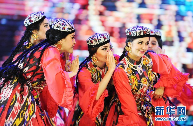 1月18日晚,烏茲別克斯坦首都塔什干人民友誼宮,烏茲別克斯坦舞蹈演員在表演中烏傳統舞蹈。