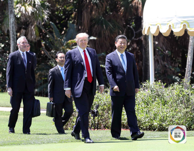 當地時間4月7日,國家主席習近平在美國佛羅里達州海湖莊園同美國總統特朗普舉行中美元首第二場正式會晤。會晤后,習近平同特朗普到秀麗宜人的海湖莊園中散步,在輕松友好的氣氛中繼續就兩國友好合作進行討論。(新華社記者劉衛兵攝)(新華國際客戶端報道)